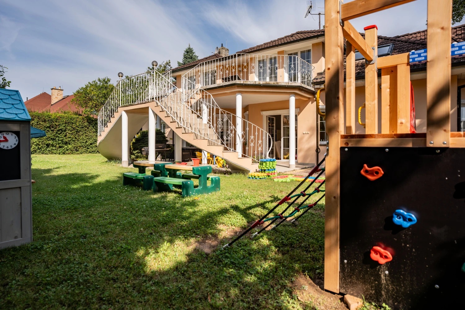 V naší školce poskytujeme individuální respektující výuku vedenou profesionálními pedagogy s mnohaletou praxí a důrazem na laskavý přístup k rozvoji talentů každého jednotlivce. Vzdušné prostory v rodinné vile s vlastním dětským hřištěm a zahradou. Strava v BIO kvalitě.